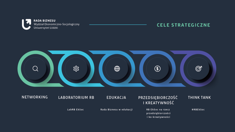 "W Radzie Biznesu współpracują ze sobą osoby zatrudnione w: korporacjach; średnich, małych i mikro firmach; organizacjach pozarządowych; instytucjach publicznych; a także właściciele małych i większych firm. Chęć do dzielenia się swoim doświadczeniem i inspirowania innych do bycia lepszym połączyła ludzi odmiennych od siebie pod względem wykonywanej działalności, pracujących w wielu sektorach gospodarki. My, Rada Biznesu wraz z przedstawicielami Wydziału Ekonomiczno-Socjologicznego Uniwersytetu Łódzkiego, mamy odwagę tworzyć swoisty ekosystem, który ma za zadanie wzmacniać umiejętności i kompetencje praktyczne studentów. Czujemy się odpowiedzialni za współtworzenie przyszłości społeczno-gospodarczej regionu łódzkiego. Aktywnie i z pełną konsekwencją promujemy symbiozę pomiędzy nauką, edukacją a przedsiębiorcami, instytucjami publicznymi i pozarządowymi."