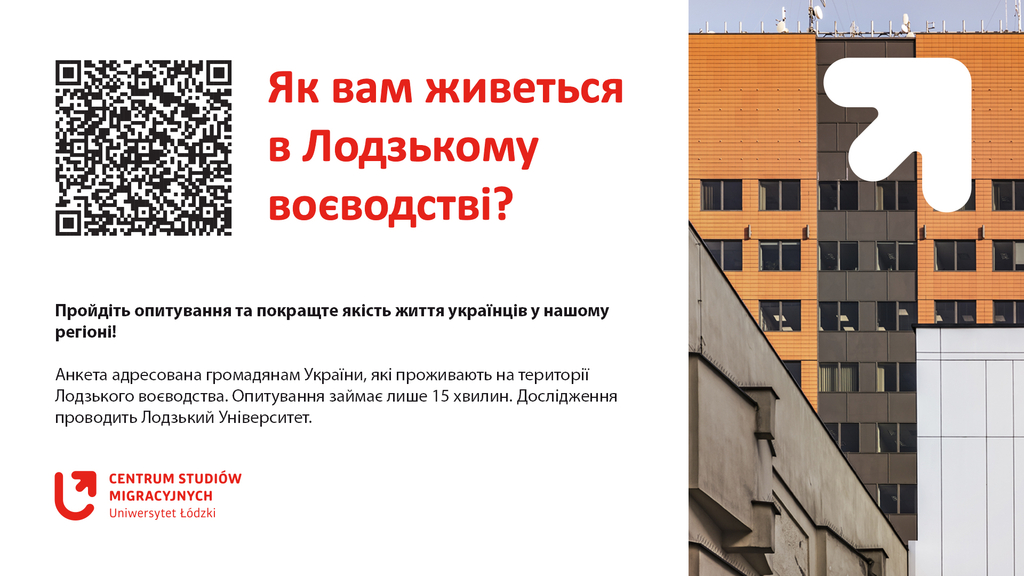 Centrum Studiów Migracyjnych UŁ realizuje badanie ankietowe dotyczące dotychczasowych doświadczeń, planów pobytowych i potrzeb integracyjnych obywateli Ukrainy zamieszkujących w województwie łódzkim. Badanie skierowane jest zarówno do osób, które przyjechały tu po agresji Rosji na Ukrainę w lutym 2022 r., jak i tych przybyłych we wcześniejszych latach.