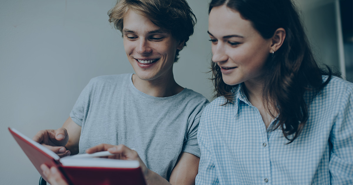 dwie młode osoby i zaproszenie do konkursu