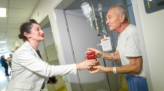 Na zakończenie uroczystości Andrzej Kasprzyk, dyrektor Szpitala im. Kopernika w towarzystwie pielęgniarek i lekarzy z Oddziału Chorób Rozrostowych przeszedł po pokojach i osobiście wręczył pacjentom słoje z miodem od UŁ i Stowarzyszenia Pszczelarzy Ziemi Łódzkiej.