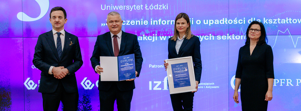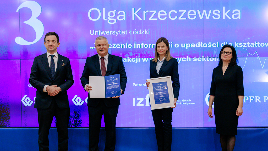 Nagrodzona rozprawa doktorska dr Olgi Krzeczewskiej pt. „Znaczenie informacji o upadłości dla kształtowania się stóp zwrotu z akcji w wybranych sektorach”, powstała pod kierunkiem naukowym dr. hab. Radosława Pastusiaka, prof. UŁ (promotor) oraz dr. Michała Soliwody (promotor pomocniczy).