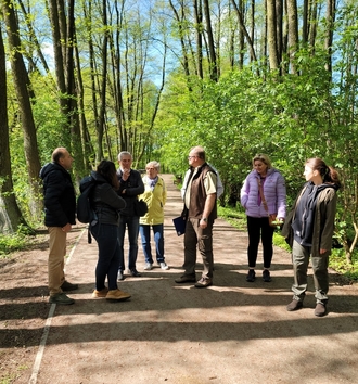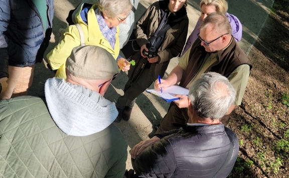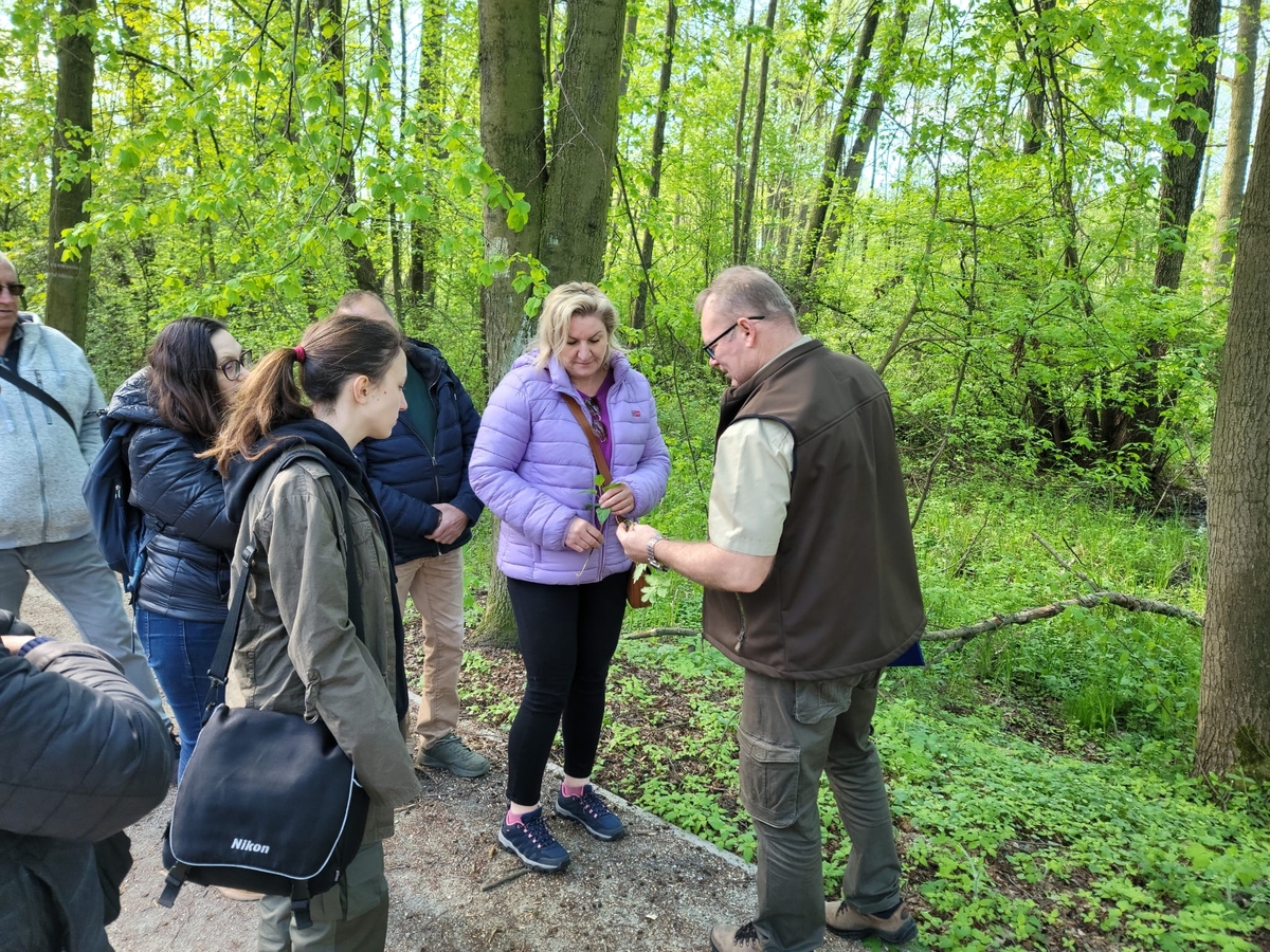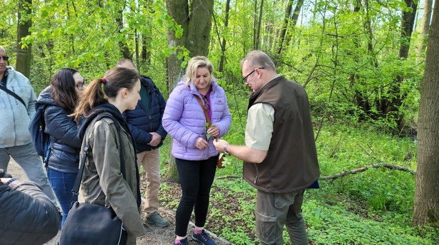 W promieniach słońca, 26 kwietnia 2025 roku, o aspekcie wiosennym roślinności runa leśnego, kwitnących geofitach i sezonowych zmianach roślinności leśnej opowiadał zainteresowanym dr Krzysztof Olejniczak z Katedry Nauk Leśnych Filii Uniwersytetu Łódzkiego w Tomaszowie Mazowieckim.