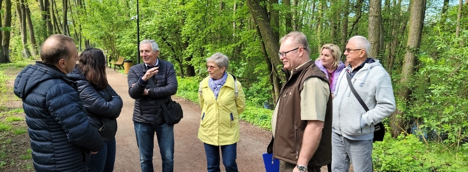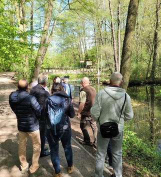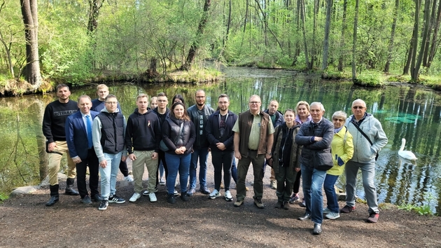 Kilkanaście osób wzięło udział w Spacerze z leśnikiem po rezerwacie Niebieskie Źródła.