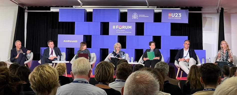 Jeden z paneli dyskusyjnych II Forum of European Universities Alliances w Barcelonie.