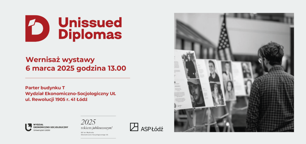 Wydział Ekonomiczno-Socjologiczny UŁ oraz Akademia Sztuk Pięknych zapraszają na wernisaż międzynarodowej wystawy „Unissued Diplomas” poświęconej pamięci 40 ukraińskich studentów poległych podczas rosyjskiej inwazji na Ukrainę, która rozpoczęła się 24 lutego 2022 roku. Wernisaż wystawy odbędzie się 6 marca 2025 o godz. 13.00. Wernisaż i wystawa odbędą się na Wydziale Ekonomiczno-Socjologicznym UŁ w budynku T na parterze (ul. Rewolucji 1905r. 41). Wystawę będzie można oglądać do 30 czerwca 2025.