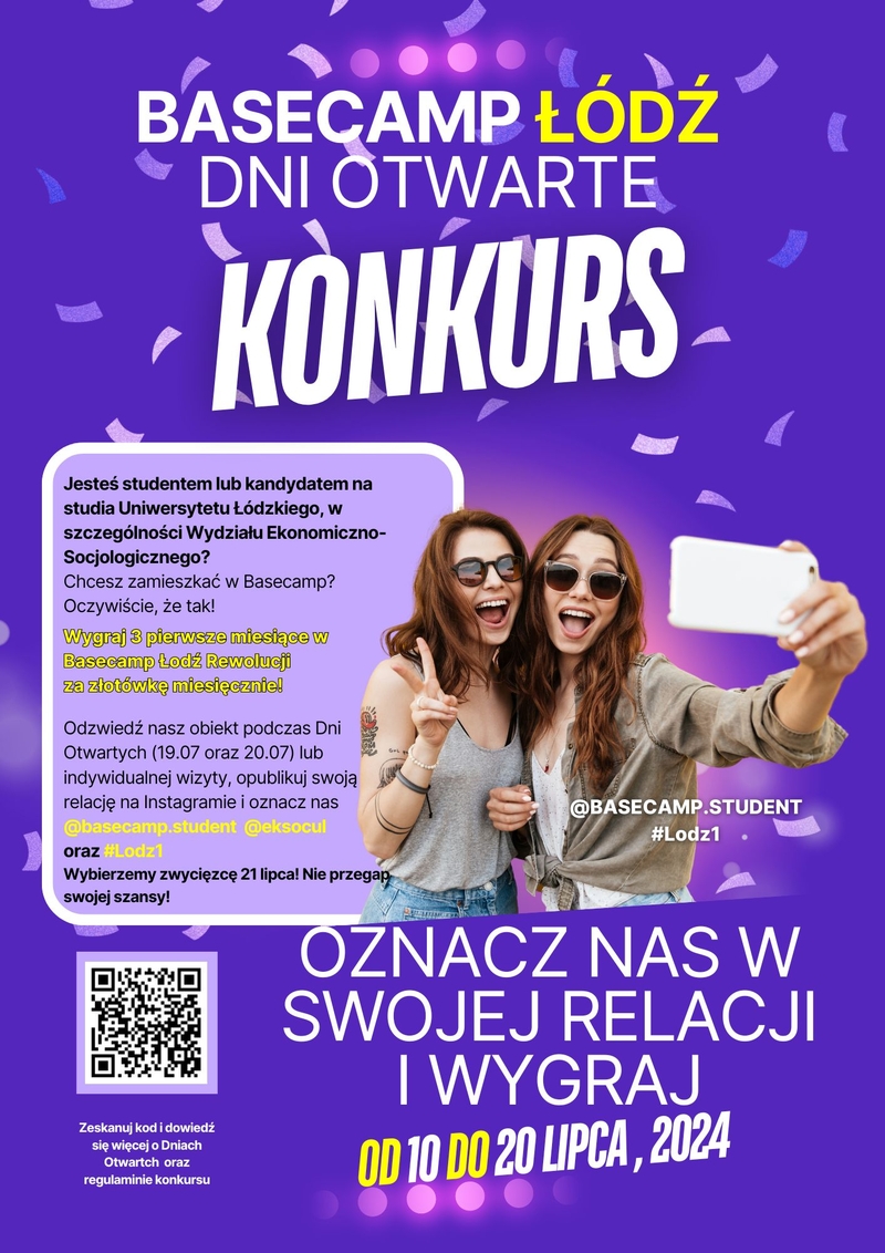 W najbliższy piątek oraz sobotę (19 oraz 20 lipca 2024) w godzinach od 09:00 do 17:00 odbędą się Dni Otwarte w łódzkim akademiku Basecamp na ulicy Rewolucji, zaraz obok naszego Wydziału. Podczas Dni Otwartych będzie można zobaczyć dostępne pokoje, przestrzenie wspólne oraz udogodnienia w obiekcie. Ponadto odwiedzający otrzymają upominek od Basecamp, będą mogli skorzystać z poczęstunku oraz będzie to niesamowita okazja do zadawania pytań managerom obiektu. Zespół Basecamp również przekaże zainteresowanym kod promocyjny znoszący opłatę administracyjną w wysokości 250 zł, który będzie można wykorzystać przy rezerwacji pokoju do niedzieli 21 lipca włącznie.