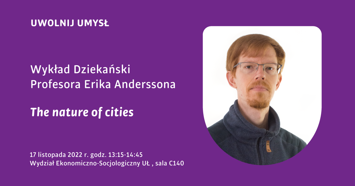 Wykład dziekański prof. Anderssona “The nature of cities” poświęcony będzie pytaniom: Kim jesteśmy i jak żyjemy? Czym jest dla nas przyroda? Wychodząc od naszych bardzo indywidualnych i osobistych relacji z naturą, prof. Andersson opisze naszą zależność od niej oraz to jak urbanizacja z czasem oderwała nas od podstaw naszej egzystencji. Profesor pokaże jak natura powoli wraca do naszych miast, by na koniec ponownie odwołać się w wykładzie do naszego codziennego życia i doświadczeń.