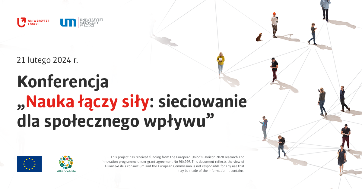 Udział w wydarzeniu jest bezpłatny. Projekt otrzymał dofinansowanie z programu badań i innowacji Unii Europejskiej Horyzont 2020 – konsorcjum Alliance4Life, który jest realizowany na Uniwersytecie Medycznym w Łodzi.