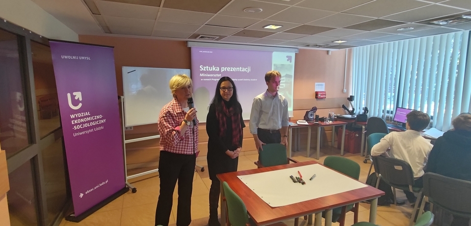 Był też czas na przedstawienie oferty edukacyjnej Wydziału, zaproszenie do studiowania na EkSocu (dziekan dr hab. Wojciech Woźniak, prof. UŁ i koordynatorka programu Dorota Cierniak-Dymarczyk) oraz na rozmowy nieformalne przy drobnym poczęstunku.