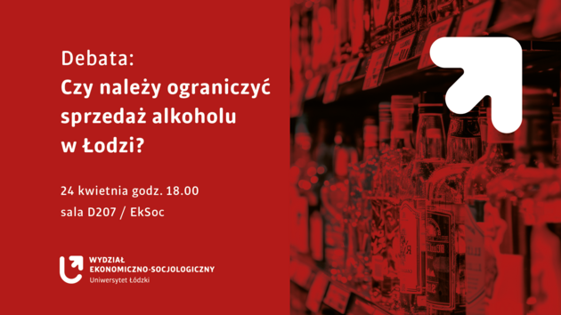 Zapraszamy na debatę „Czy należy ograniczyć sprzedaż alkoholu w Łodzi”, która odbędzie się 24 kwietnia 2025 o godz. 18.00 w sali D207 na Wydziale Ekonomiczno-Socjologicznym Uniwersytetu Łódzkiego.